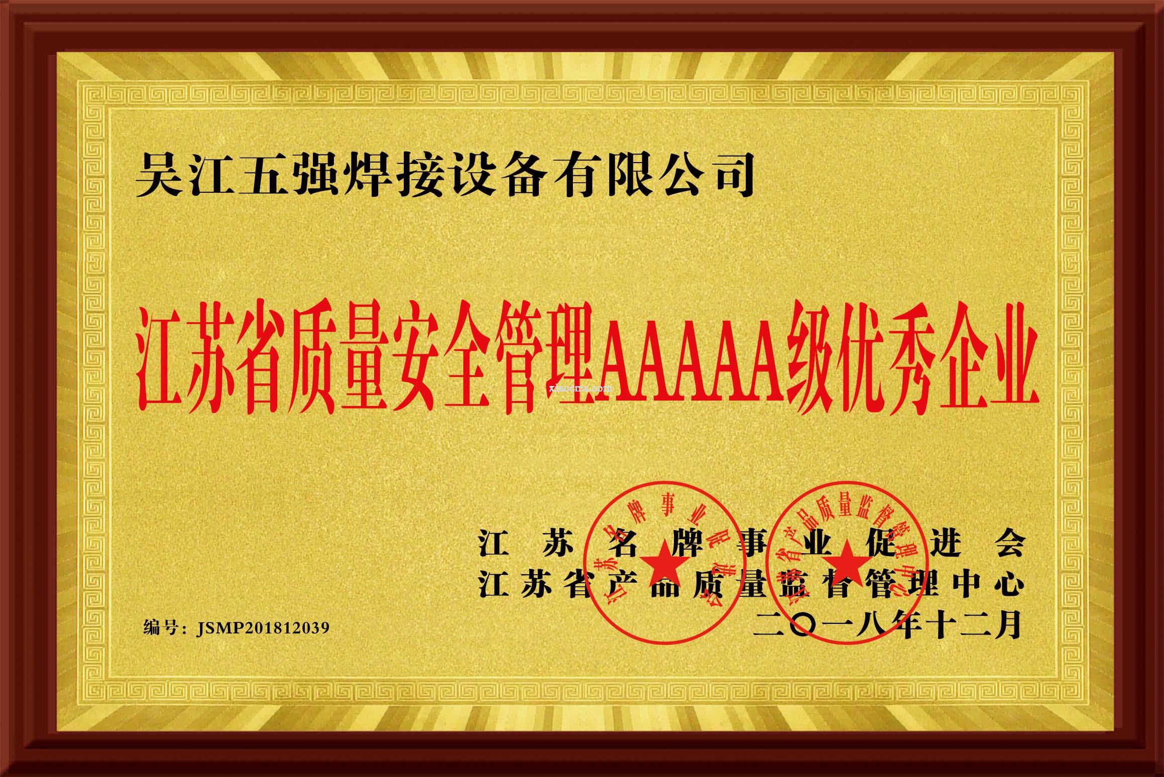 江苏省质量安全管理AAAAA级优秀企业